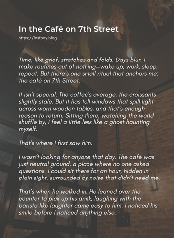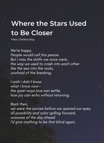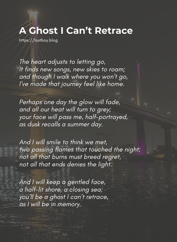 I watch you laughing, lit in gold,with faces I will never meet;their stories wrap around you, bold,while mine lies folded, bittersweet. I’ve known far more than I let show—the quiet truths between your lines;half-shaded words you let me know,and all the rest you left behind. It stings, but not in ways that last;I bite my... Continue Reading →
