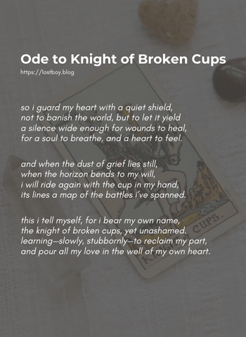 i wake to the taste of salt on my lips,not from the sea, but from tears unsipped—wine once rich now puddled in the dirt,days i can’t reclaim, nights i can’t convert. the tide has long fled these weary shores,leaving my chest heavy, the grit in it coarse;love’s harbor lies shattered, its lantern dim,and the sea’s... Continue Reading →