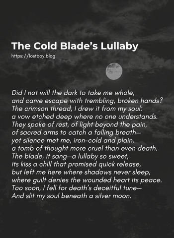 Did I not will the dark to take me whole, and carve escape with trembling, broken hands? The crimson thread, I drew it from my soul: a vow etched deep where no one understands. They spoke of rest, of light beyond the pain, of sacred arms to catch a falling breath— yet silence met me,... Continue Reading →