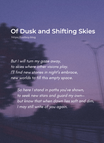 So here I stand in paths you've shown, to seek new stars and guard my own— but know that when dawn lies fort and dim, I may still write of you again.