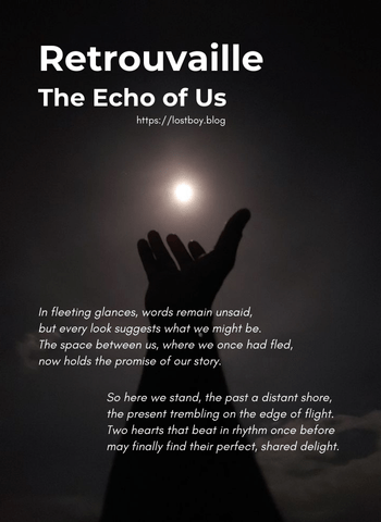 So here we stand, the past a distant shore, the present trembling on the edge of flight. Two hearts that beat in rhythm once before may finally find their perfect, shared delight.
